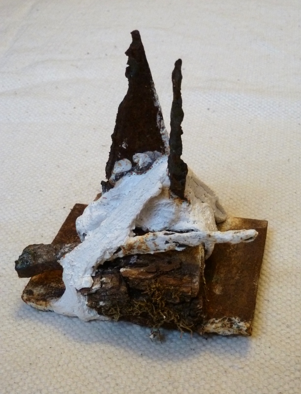 First I thought of dropping the "Schwarzwaldschifferl" (according to Harald), because it's a mysterious place to me and I don't really liked it. But after a few days standing in front of my nose (I hadn't time to make photos), bit by bit, I found some new things I like. So, as you can see in the first picture, the face which appears in the "sail" and the different structures of wood, moss and the rusty panel (see picture 2). And if I could find a good way to fasten it, on the wall, (like in the third picture) this would be great, because to me it's a nice picture also.